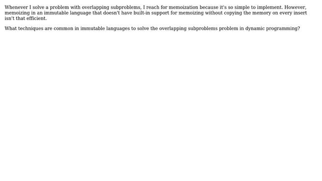 Software Engineering: Overlapping subproblems in immutable languages (2 Solutions!!)