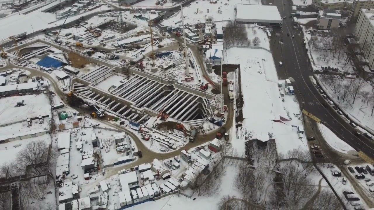 Рассмотрим ход строительства станции метро Печатники БКЛв месте привыкания к Люблинско-Дмитровской линии. Январь 2020 года.