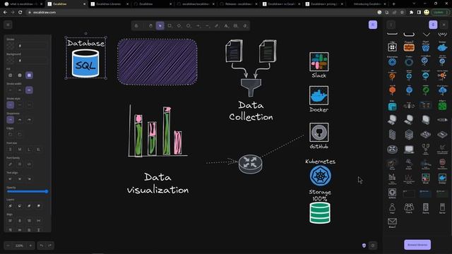 Excalidraw is an amazing tool to capture your ideas and save them onto your own computer. There are tons of libraries of shapes, icons, etc, you can import with a few mouse clicks. I find this tool very easy to use, intuitive and fun as you capture your ideas into a written form. A picture is worth a thousands words they say. And this gets you there for free. Here is a free version you can use anytime https://excalidraw.com/ There is an Excalidraw+ paid version for $6 or $7 dollars a month, the free version features are compared here: https://plus.excalidraw.com/excalidraw-plus-vs-excalidraw Here is their roadmap: https://plus.excalidraw.com/roadmap