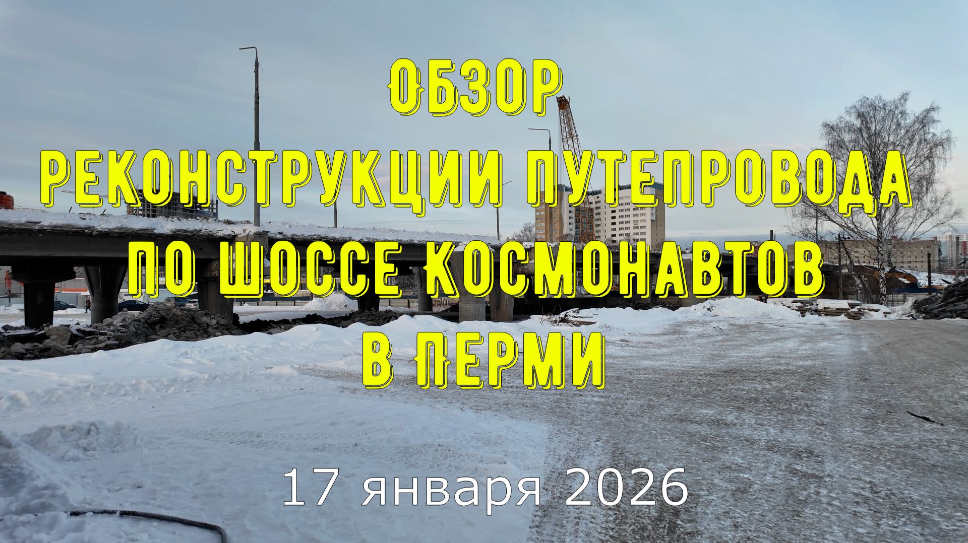 Обзор реконструкции путепровода по шоссе Космонавтов в Перми на 17 января 2026 года
