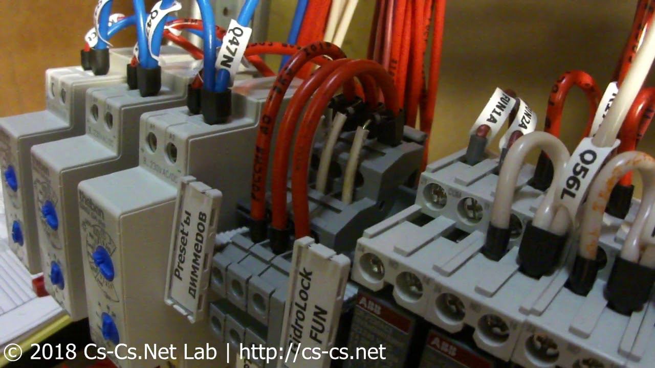 Оригинальный пост тут: http://cs-cs.net/sh-fili-grad-mk-vantovye-mosty Поддержать мои проекты: https://cs-cs.net/wishlist Этот щит - немного бестолковый из-за того, что дизайнеры отвели под него очень узкое и высокое место. Поэтому сам щит получился не совсем грамотым в плане монтажа: его высота - 2100 мм, и до верхних клемм так просто не добраться. Так лучше не делать! В остальном это щит для квартиры, с автоматикой света на двх Logo. Свет включается и выключается. Некоторые группы света диммируются при помощи диммеров Theben DiMax 534 Plus. Также Logo управляет открыванием-закрыванием воды и полным питанием щита по кнопке.