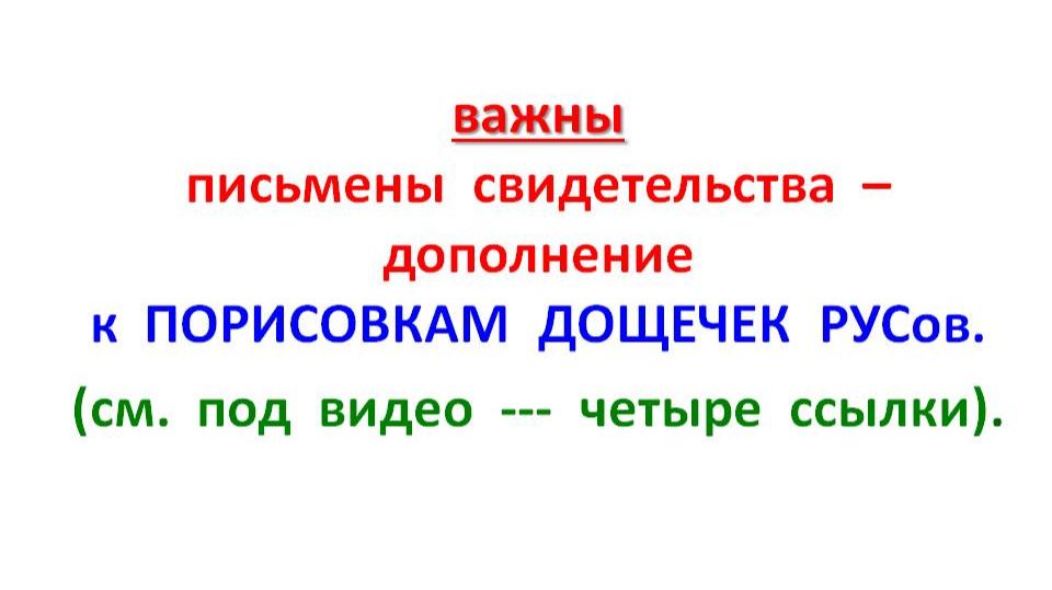 важны письмены свидетельства - дополнение к ПОРИСОВКАМ ДОЩЕЧЕК РУСов.(см. под видео - четыре ссылки)