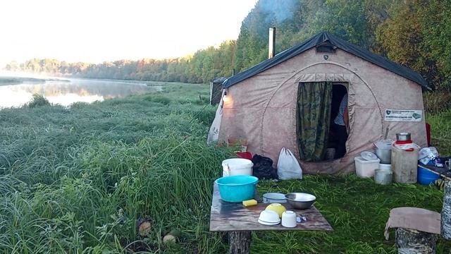 Осеннее утро, жизнь в палатке
