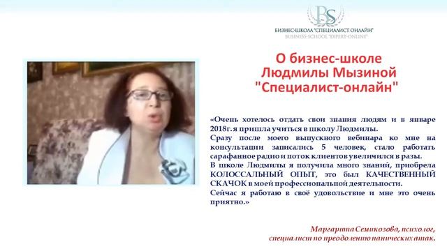 Мнение о бизнес-школе Л.Мызиной выпускницы Маргариты Семкозовой