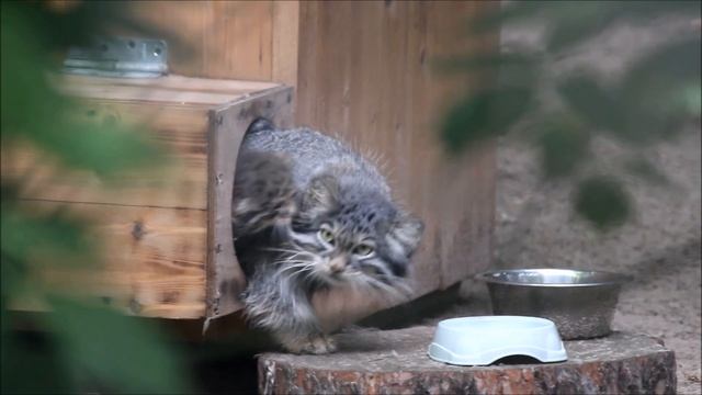 Манул Снежинка не выпускает своих котят из домика 09.06.2025