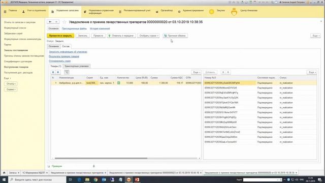 1С Медицина. Больничная аптека. Подключение к ГИС МДЛП
