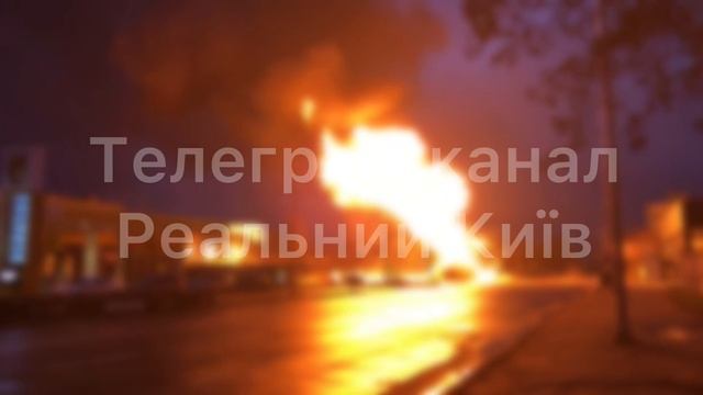 Пожар после ракетного удара в Киеве