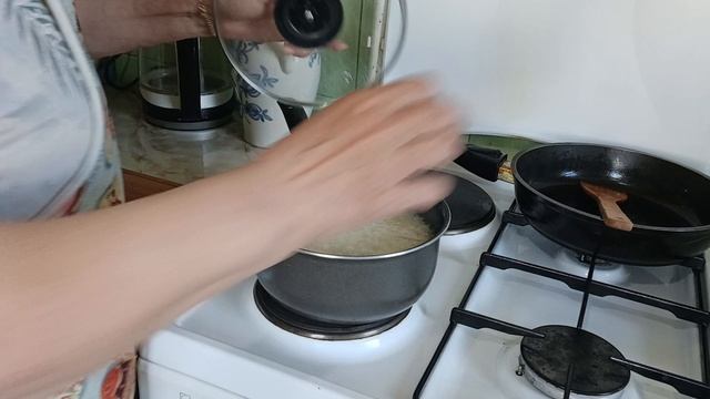 Дела на кухне продолжаются.Отварила рис.Салат с квашенной капусты.Отключили свет!