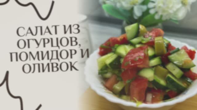 Салат из огурцов, помидор и оливок