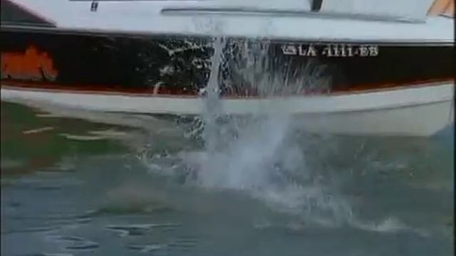 Девушка спрыгивает с борта катера в морскую воду.