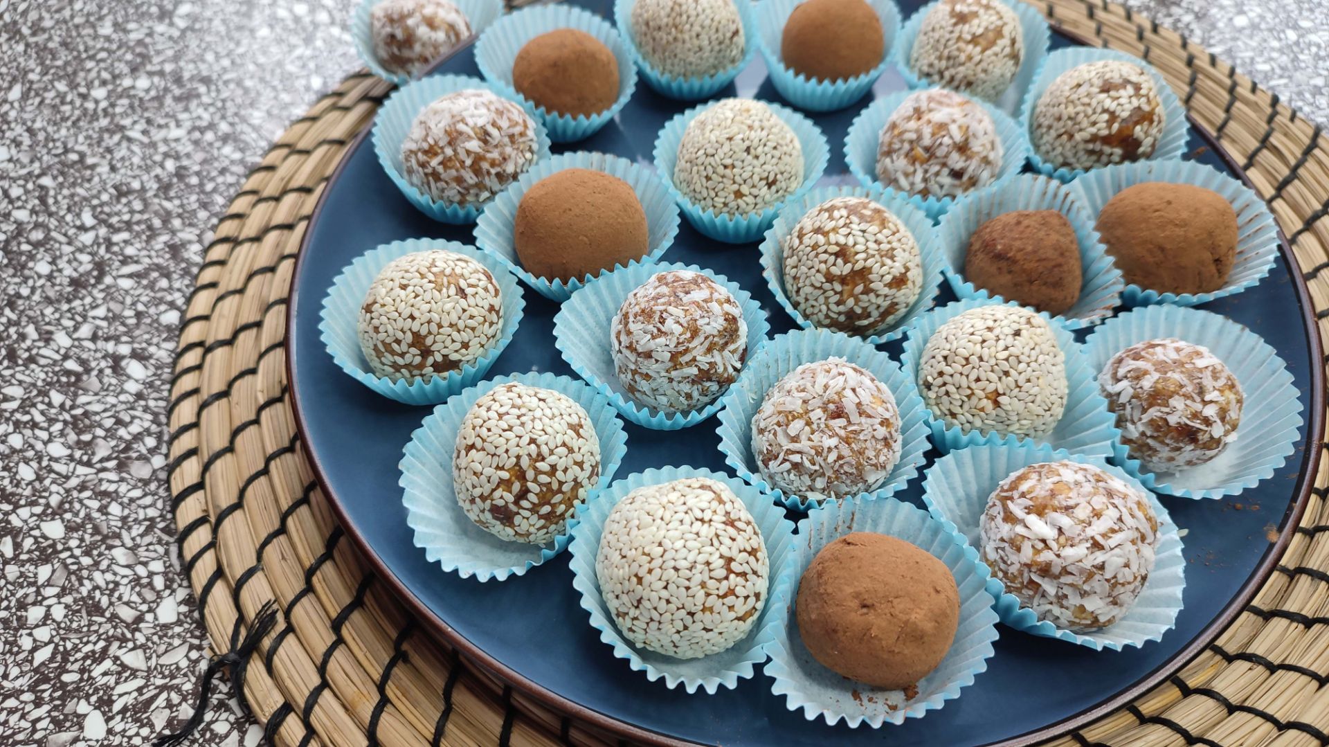 Ингредиенты: миндаль 130 гр, фундук 130 гр., финики(с косточкой) 150 гр., сладкий сироп (у меня сироп тапинамбура, можно заменить мёдом) 50 мл., кокосовая стружка 40 гр. Для панировки: кокосовая стружка, кунжут, какао. Описание здесь https://dzen.ru/a/Y6r0JtYFjweTzPoM?share_to=link