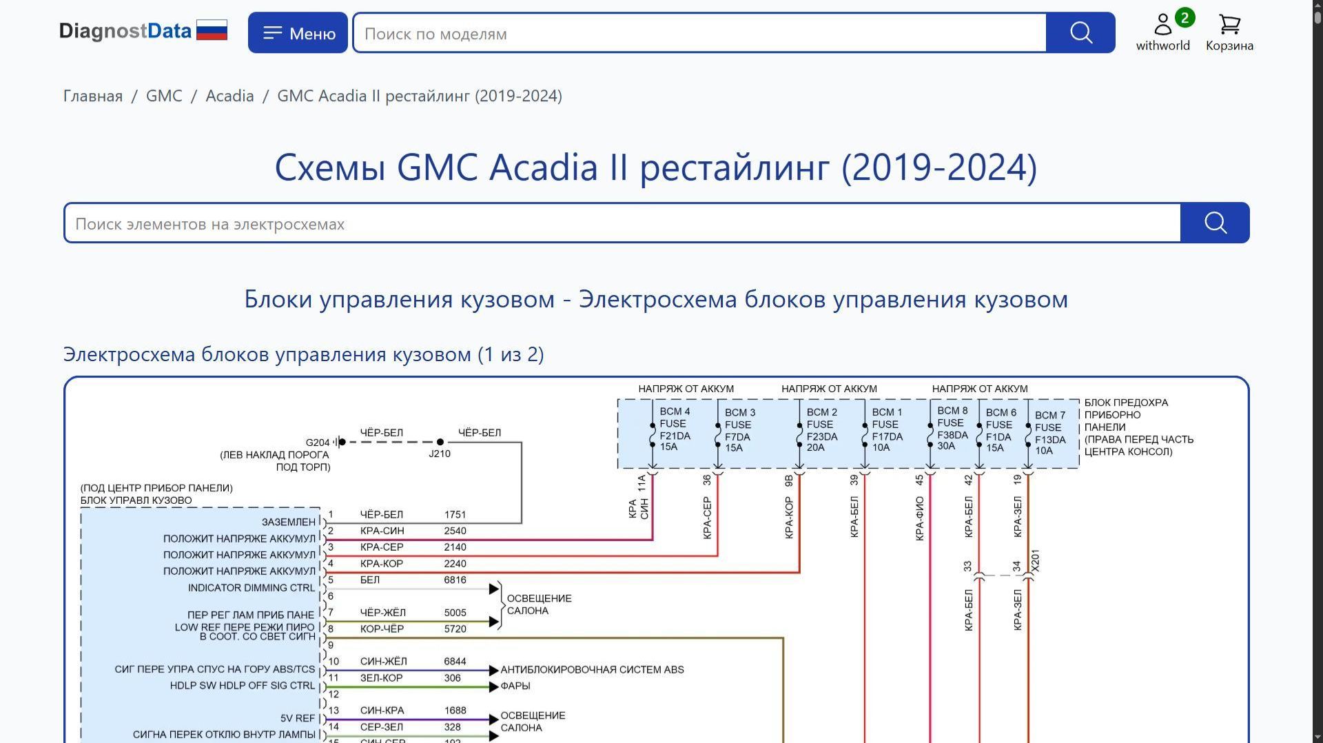 https://diagnostdata.ru/gmc/acadia/ii-2019-2024/ Электрохемы, распиновки, схемы электропроводки GMC Acadia II рестайлинг (2019, 2020, 2021, 2022, 2023, 2024 годов выпуска) 2.0L VIN 4, 2.5L VIN A, 3.6L VIN S Схемы на русском языке для систем: Схемы Блоки управления кузовом, Схемы Магнитола, Схемы Сиденья, Схемы Кондиционирование воздуха, Схемы Фары, Схемы Точки подключения масс, Схемы Круиз-контроль, Схемы Центральный замок, Схемы Коробка передач, Схемы Стеклоподъемники, Схемы Электронная подвеска, Схемы Can шина, Схемы Сигнализация, Схемы Вентилятор охлаждения, Схемы Системы помощи водителю, Схемы Багажник, задняя дверь, лючок топливного бака, Схемы Дворники и омыватели, Схемы Блок предохранителей и реле, Схемы Освещение салона, Схемы Память, Схемы Подушки безопасности, Схемы Электроусилитель руля, Схемы Складная крыша/люк, Схемы Приборная панель, Схемы Активные управление кузовом и подвеской, Схемы Подогрев стекол, Схемы Управление зеркалами заднего вида, Схемы Фары и фонари, Схемы Предупреждение, Схемы Клаксон, Схемы Антиблокировочная система abs 2.0л vin 4, Схемы Антиблокировочная система abs 2.5l vin a, Схемы Антиблокировочная система abs 3.6л vin s, Схемы Переключатель блокировки 2.0l vin 4, Схемы Переключатель блокировки 2.5l vin a, Схемы Блокировка селектора 3, 6л vin s, Схемы Стартер/генератор 2.0л vin 4, Схемы Стартер/генератор 2, 5л vin a, Схемы Стартер/генератор 3, Схемы Двигатель, и др.