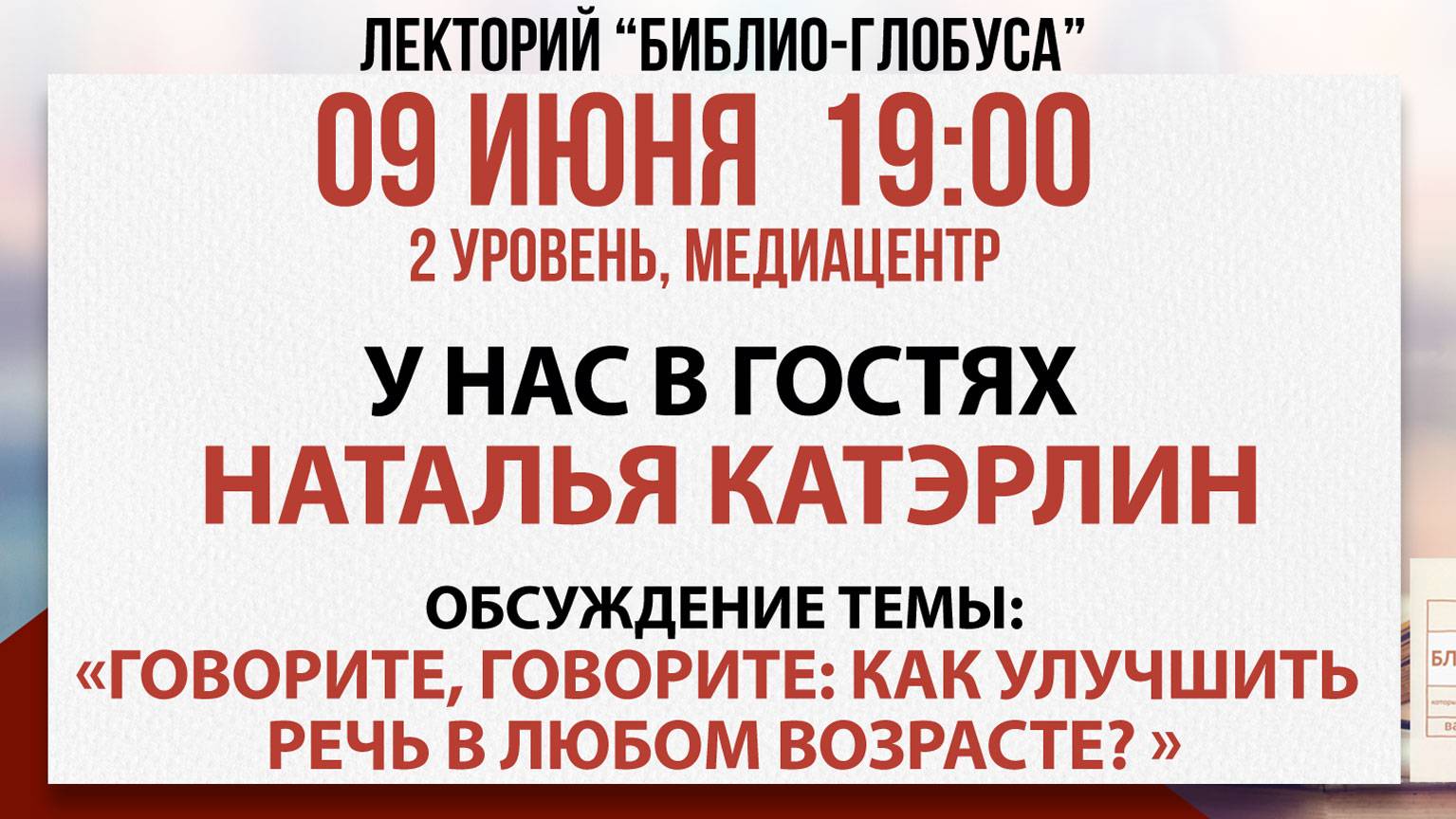 Лекторий Библио-Глобуса: «Говорите, говорите: как улучшить речь в любом возрасте?», 09 июня 2025