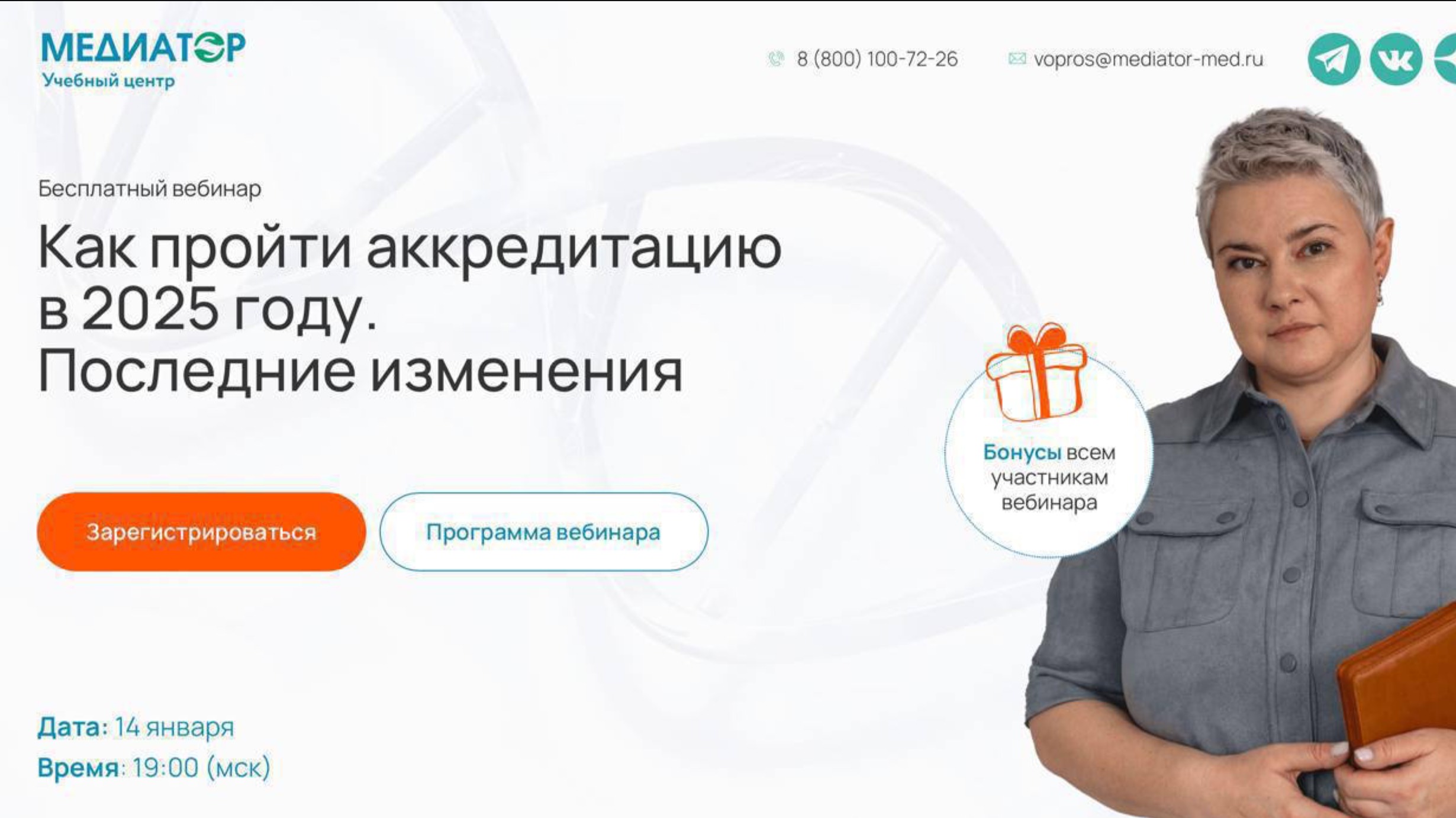 Делимся записью вебинара с Натальей Купкиной, руководителем методического отдела Учебного центра Медиатор. Мы составим пошаговый план прохождения аккредитации в 2025 году. Вы узнаете последние изменения от ФАЦ. Программа вебинара: 1 Последние изменения 2025 года в процессе периодической аккредитации 2 Какое обучение больше не примут. 3 Почему портал НМО не гарантия, что обучение засчитают 4 Нужно ли вносить весь стаж в ФРМР и как вообще его подтвердить 5 Как проводится оценка документов, на что действительно смотрят 6 Нет сертификата, но работали по этой специальности 10 лет: можно ли пройти аккредитацию 7 Когда лучше проходить обучение с баллами, а когда это может стать проблемой 8 С какими новыми требованиями мы столкнулись Пройдите наш тест! Сможете ли вы пройти периодическую аккредитацию самостоятельно с 1 раза! https://mrqz.me/6373a10e2dc8a90040d1e1d1