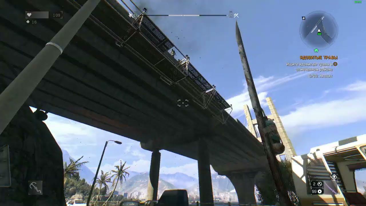 В игре Dying Light стою под мостом около рыбацкого поселка и зомби падают на меня с моста пытаясь схватить.