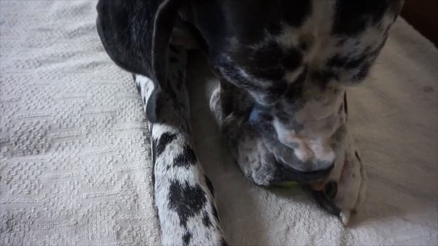 My dog eats an apple. That's very funny!