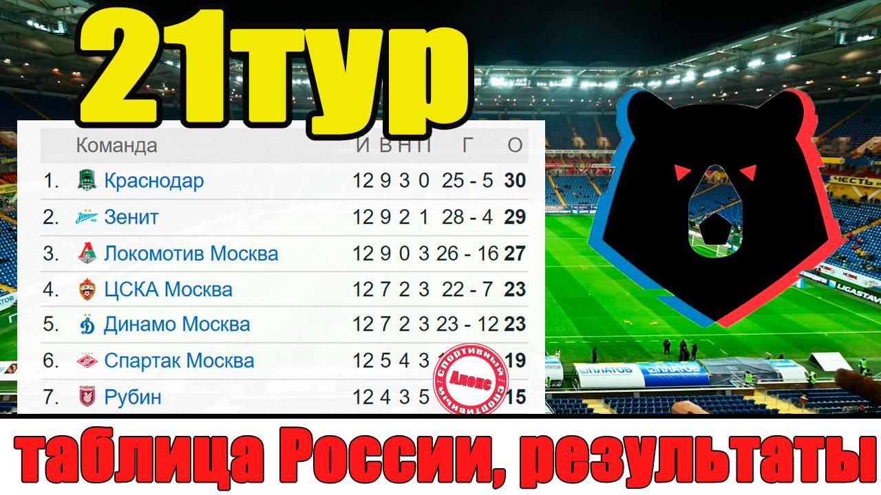 Чемпионат России по футболу. Таблица, расписание, результаты. Итоги всего 21 тура.