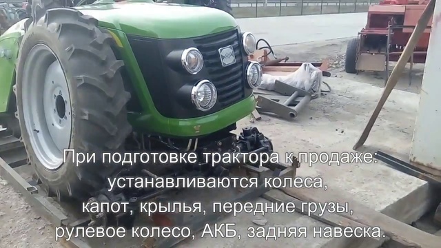 Трактора, в том числе с завода Chery, поступают в контейнерах, упакованные в кроватки (металлическая упаковка). При подготовке трактора к продаже устанавливаются колеса, капот, крылья, передние грузы, рулевое колесо, АКБ, задняя навеска. Затем выполняется предпродажная подготовка, согласно регламента. В двигатель и трансмиссию трактора вмешательства не происходит. http://minitrak.com.ua/product_267.html