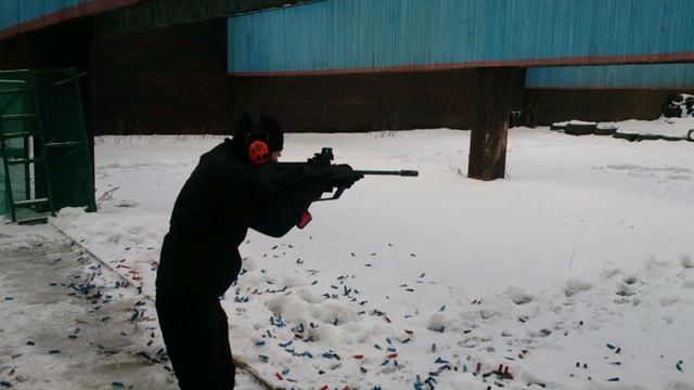 Стрельба из гладкоствольного охотничьего оружия Сайга 12 в тюнинге Буллпап ствол 760 мм