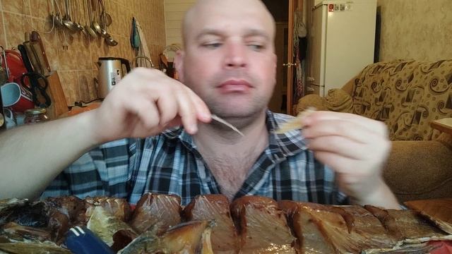 Мукбанг рыба копчёная и пивасик.