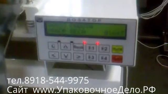 Подробно на сайте http://upakovochnoedelo.ru/ Предприятие "Упаковочное дело" г. Ростов-на-Дону тел. 8-918-544-99-75, тел. 8-951-839-71-89 предлагает самое современное оборудование на выгодных для Вас условиях: - Фасовочно - упаковочное оборудование (автоматы, полуавтоматы, дозаторы) для фасовки и упаковки сыпучих, пылящих и штучных продуктов (семечки, орехи, фисташки, чипсы, крупы, сахар, конфеты, пряники, пельмени, мука, кофе, какао, чай, порошки, специи, сухофрукты, соль, сухари, лавровый лист, древесный уголь, корма и др.), - а также для жидких и пастообразных продуктов; Термоупаковочное оборудование для групповой упаковки бутылок, банок, коробок. - Термоусадочные машины, - Оборудование для групповой упаковки в термоусадочную пленку - Вакуум упаковочные аппараты и др. оборудование. - Запайщики пакетов, ручные, напольные ножные, конвейерные роликовые Наше предприятие предоставляет полный спектр услуг: поставка оборудования, сборка, подключение, пуско-наладка, обучение, гарантийное и послегарантийное обслуживание. С уважением и надеждой на сотрудничество, Юрий Николаевич / Предприятие "Упаковочное дело" г. Ростов-на-Дону тел. 8-918-544-99-75 тел. 8-951-839-71-89 pakdelo@bk.ru info@upakovochnoedelo.ru stanokpak@yandex.ru Наш сайт www.УпаковочноеДело.рф http://upakovochnoedelo.ru/ http://fasovka-upakovka.ruprom.net/ Весовой дозатор Д-03-138 (платформа) для фасовки сыпучих продуктов Назначение: Дозатор предназначен для весового дозирования сыпучих материалов с высокой степенью точности. Упаковка производится в готовые пакеты, мешки, коробки и т.д. Рабочий диапазон весов от 0.1 до 12 кг. Дозирующее оборудование дает возможность упаковывать такие продукты как крупы, короткорезанные макаронные изделия, орехи, семечки, сахар и т.д. Описание: С электронного блока задаются параметры для работы дозатора, на дисплее высвечивается текущее значение веса. Нажатием на педаль подается команда на набор очередной дозы продукта. Набранная доза опускается по лотку в стоящий на весовой платформе готовый пакет. Технические характеристики: Пределы дозирования, гр 100-12000 Производительность, уп/мин до 10 Вместимость бункера, л 60 Электропитание, В 220 Потребляемая мощность, кВт, не более 1 Габариты, мм 1200х830х1600 Масса, кг 80