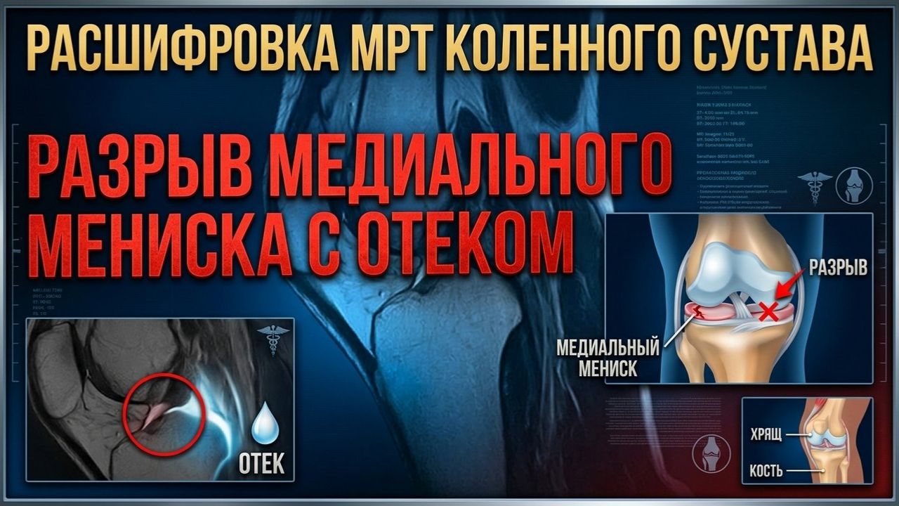 ОТЁК КОЛЕНА (жидкость в коленном суставе) и КИСТА МЕНИСКА на расшифровке МРТ коленного сустава