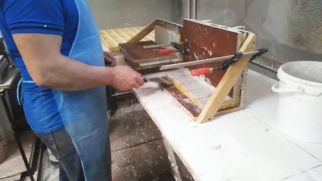 Заливка угловых форм декоративного кирпича.