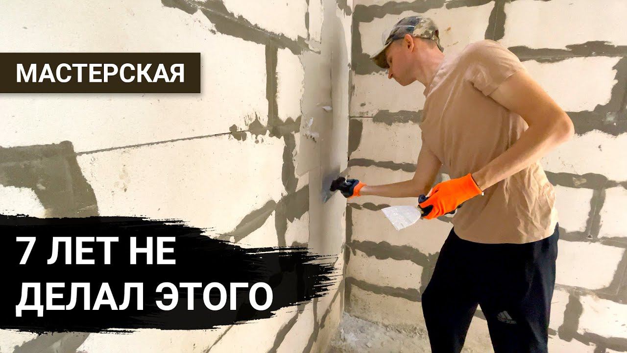 Начал штукатурить стены в мастерской