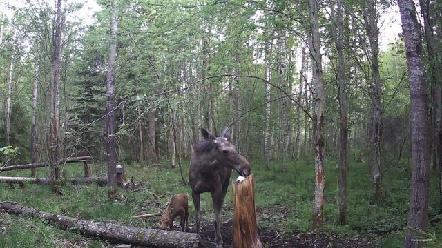 Приветствую Вас Друзья!!! Мама привела малыша на солонец. Они очень осторожны, медведь где-то рядом. Приятного просмотра!!!