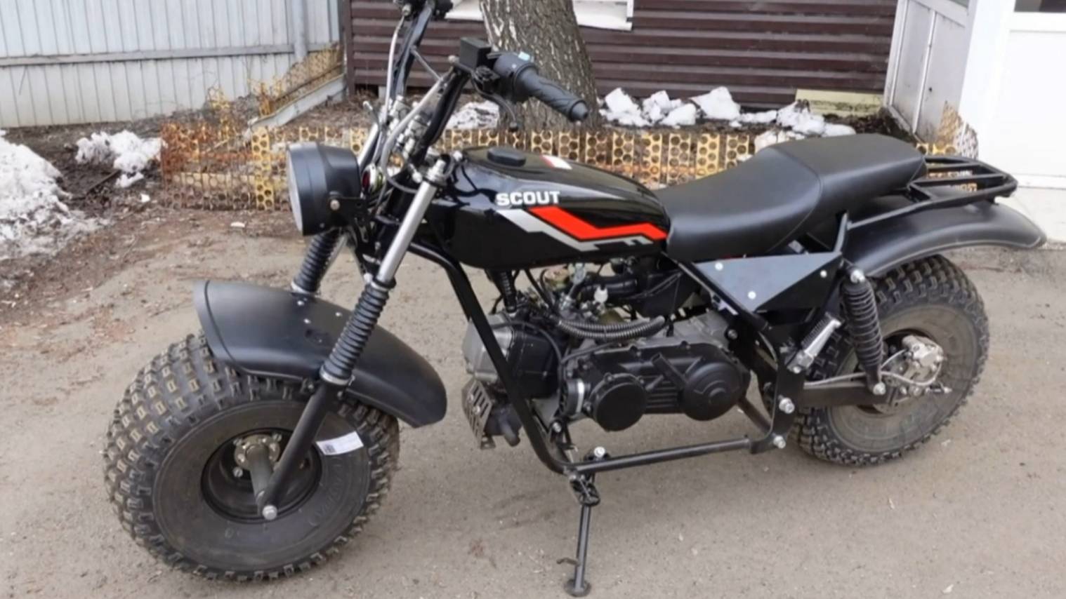 Мотоцикл CКАУТ-11 в "голом" виде, контрольная сборка. Рама, двигатель, колеса. Особенности.