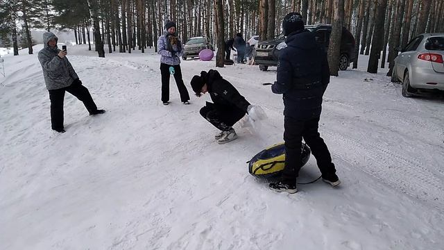 Спускаемся по ледяной горке снежной зимой