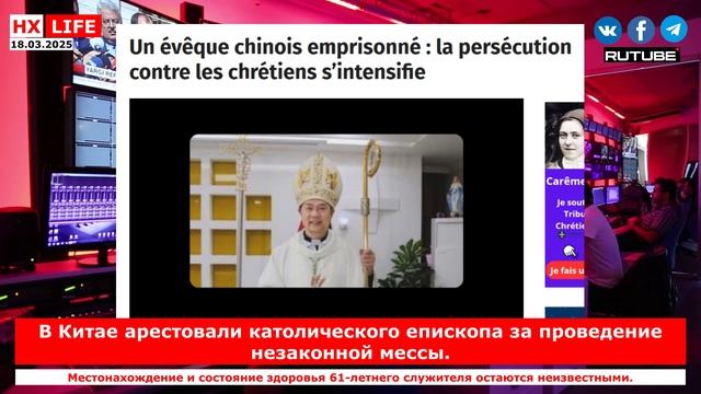 НХ-LIFE: В Китае арестовали католического епископа за проведение «незаконной» мессы Местонахождение и состояние здоровья 61-летнего служителя остаются неизвестными. 7 марта 2025 года епископ Римско-Католической Церкви Питер Шао Чжумин был арестован китайской полицией безопасности за то, что 27 декабря провел публичную мессу в присутствии 200 верующих, сообщает французский сайт tribunechretienne. Как отмечает издание, епископ – «видная фигура подпольной церкви Китая» и является «одним из многочисленных жертв режима, который намерен установить контроль над совестью и религией». 61-летнему епископу Шао было предписано выплатить колоссальный штраф в размере 200 000 юаней (27 500 долларов США) за проведение службы. Однако священнослужитель отказался, утверждая, что не нарушил никаких законов. «Коммунистические власти, со свойственным им цинизмом, оправдали этот арест, сославшись на "соображения безопасности" – ложный предлог, уже использовавшийся во время предыдущих задержаний», – говорится в сообщении. Местонахождение и состояние здоровья католического служителя после ареста остаются неизвестными. «Необходимо срочно потребовать немедленного освобождения епископа Шао и решительно осудить эти акты преследования, нарушающие религиозную свободу и человеческое достоинство», – призвали в tribunechretienne. Ссылка: https://tribunechretienne.com/un-eveque-chinois-emprisonne-la-persecution-contre-les-chretiens-sintensifie/