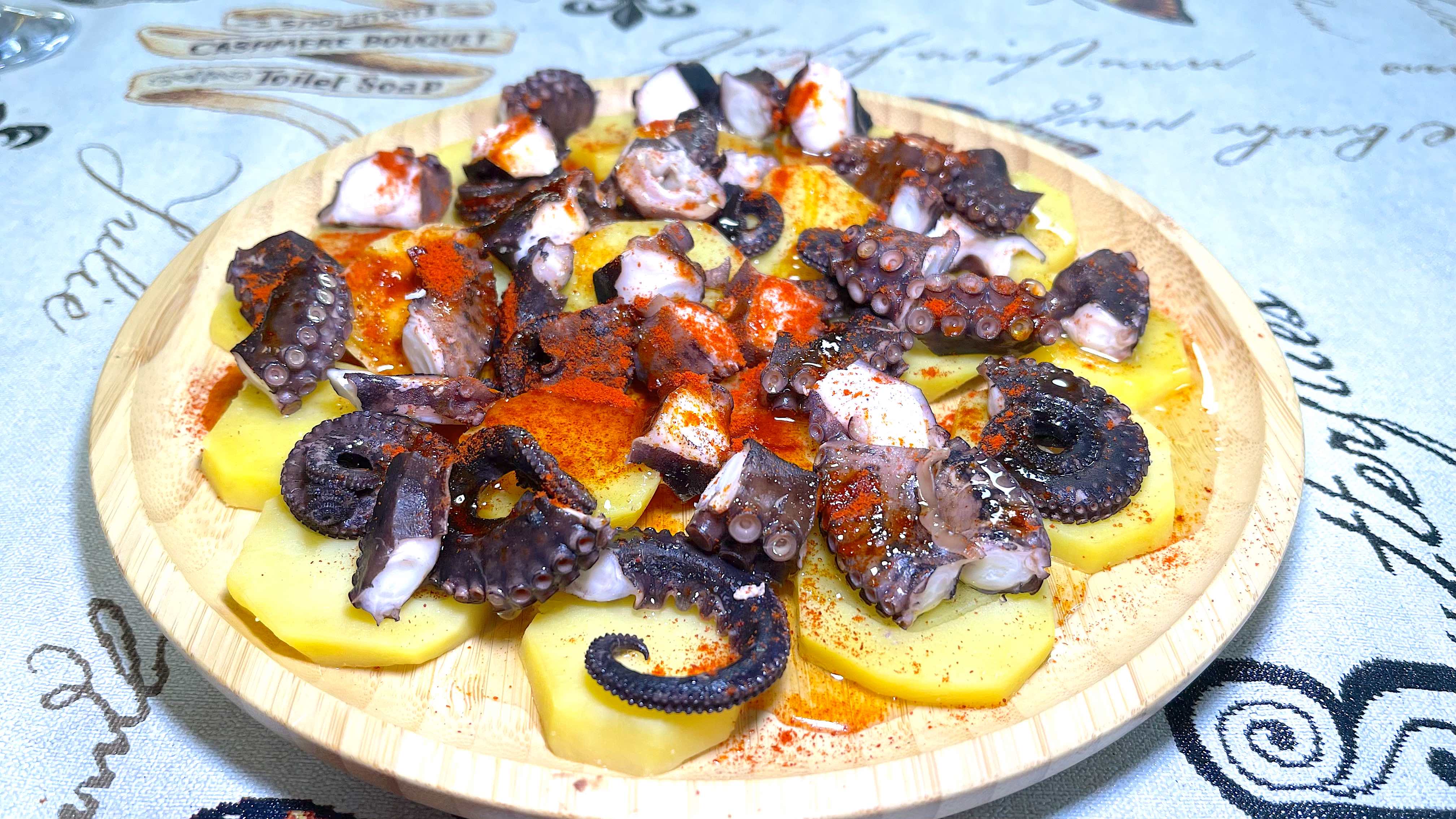 Галисия - автономная область Испании на северо-западе Пиренейского полуострова … с богатой историей и культурой … а кулинарный рецепт приготовления осьминога … помог ей завоевать кухни всего мира! Pulpo a la gallega или осьминог по-галисийски … крайне простое и очень вкусное блюдо … осьминог, несколько картофелин, паприка, соль и оливковое масло … вот и весь рецепт! Осьминога опускаем несколько раз в кипящую воду … галисийцы называют это - «испугать осьминога!» … до характерного скручивания щупалец и оставить варить на 30-60 минут … до мягкости … ее проверяем ножом или шпажкой … картошку режем кружочками … заливаем осьминогом бульоном и варим до готовности … по традиции блюдо подается на круглой деревянной посуде … раскладываем картошку … сверху кусочки осьминога … солим … посыпаем паприкой … поливаем оливковым маслом … украшаем бокалом вина … и предаемся сладким минутам чревоугодия, уносящим нас в приятный мир сказочных грез … время в этот миг, как говорят галисийцы … останавливается … пока ваша деревянная тарелка не опустеет … я обещаю … вам захочется добавки!!! Приятного аппетита!