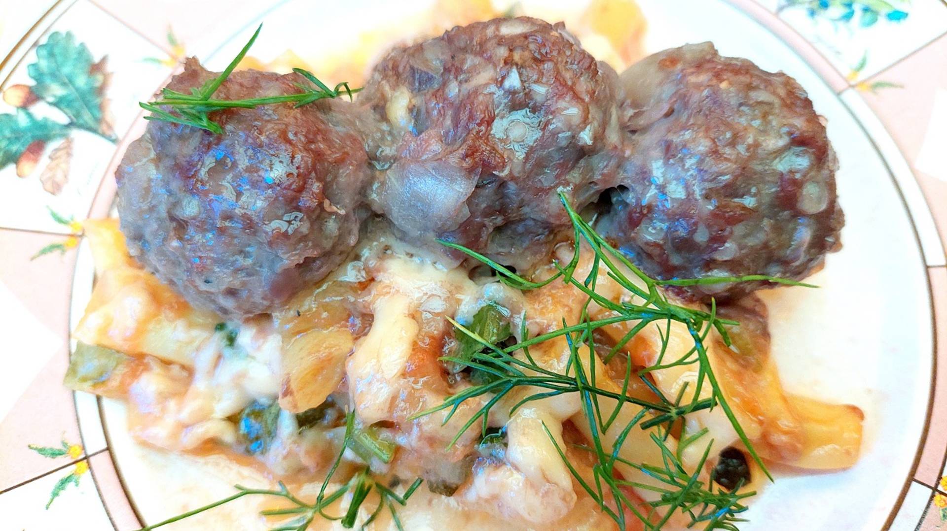 Кабачки запеченные со спаржевой фасолью и фрикадельками. Прекрасное овощное ассорти.