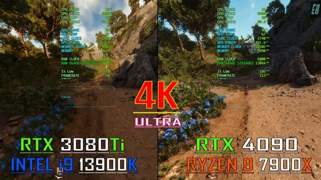 RTX 3080Ti + INTEL i9 13900K vs RTX 4090 + RYZEN 9 7900X // PC GAMES BENCHMARK TEST // 2160P || SYSTEM :- OS Windows 10 pro CPU RYZEN 9 7900X MOBO MSI MEG X670E ACE CPU INTEL i9 13900K MOBO Asus ROG Strix Z790 - E Gaming COOLER Corsair ICUE H150I ELITE GPU Asus TUF Gaming RTX 4090 24GB GPU Asus ROG Strix Gaming RTX 3080Ti 12GB SSD Samsung 980 PRO 2TB PCIe 4.0 NVMe M.2 HDD WD Blue 4TB Desktop Hard Disk Drive PSU Corsair HX1500i 1500 Watt 80 Plus Platinum RAM Corsair Dominator 32GB DDR5 6000MHz - CL36 THANK YOU FOR WATCHING-- Your support is very important, please like and subscribe to the channel. Теги: benchmark test,fps test,intel vs amd,amd vs nvidia,radeon vs geforce,4k gameplay,4k benchmark,ryzen,1080p gaming,4k gaming,4k gaming benchmark,exploring benchmark,explore benchmark,benchmark,rtx 4090,4090,4090 vs 3080ti,3080ti vs 4090,intel i9 13900k,i9 13900k,13900k,ryzen 9 7900x,7900x,13900 k vs 7900x,7900x vs 13900k,13900k + 3080ti,3080ti + 13900k,4090 + 7900x,7900x +4090,new driver,522.25