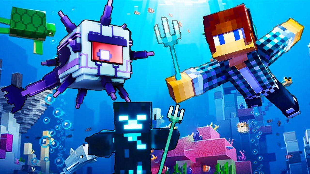 СРАЖАЮСЬ СО СТРАЖАМИ И УТОПЛЕННИКАМИ С ТРЕЗУБЦЕМ В МАЙНКРАФТЕ!!!