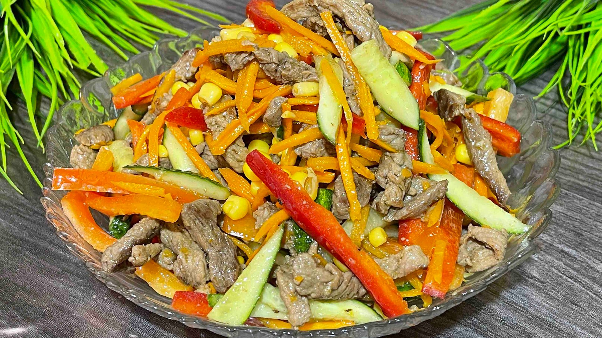 Салат который будет съедаться первым. Салат с говядиной и овощами. Простой рецепт.