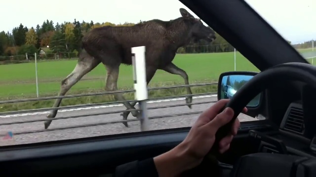 Типичный шведский участник дорожного движения - лось на шоссе )