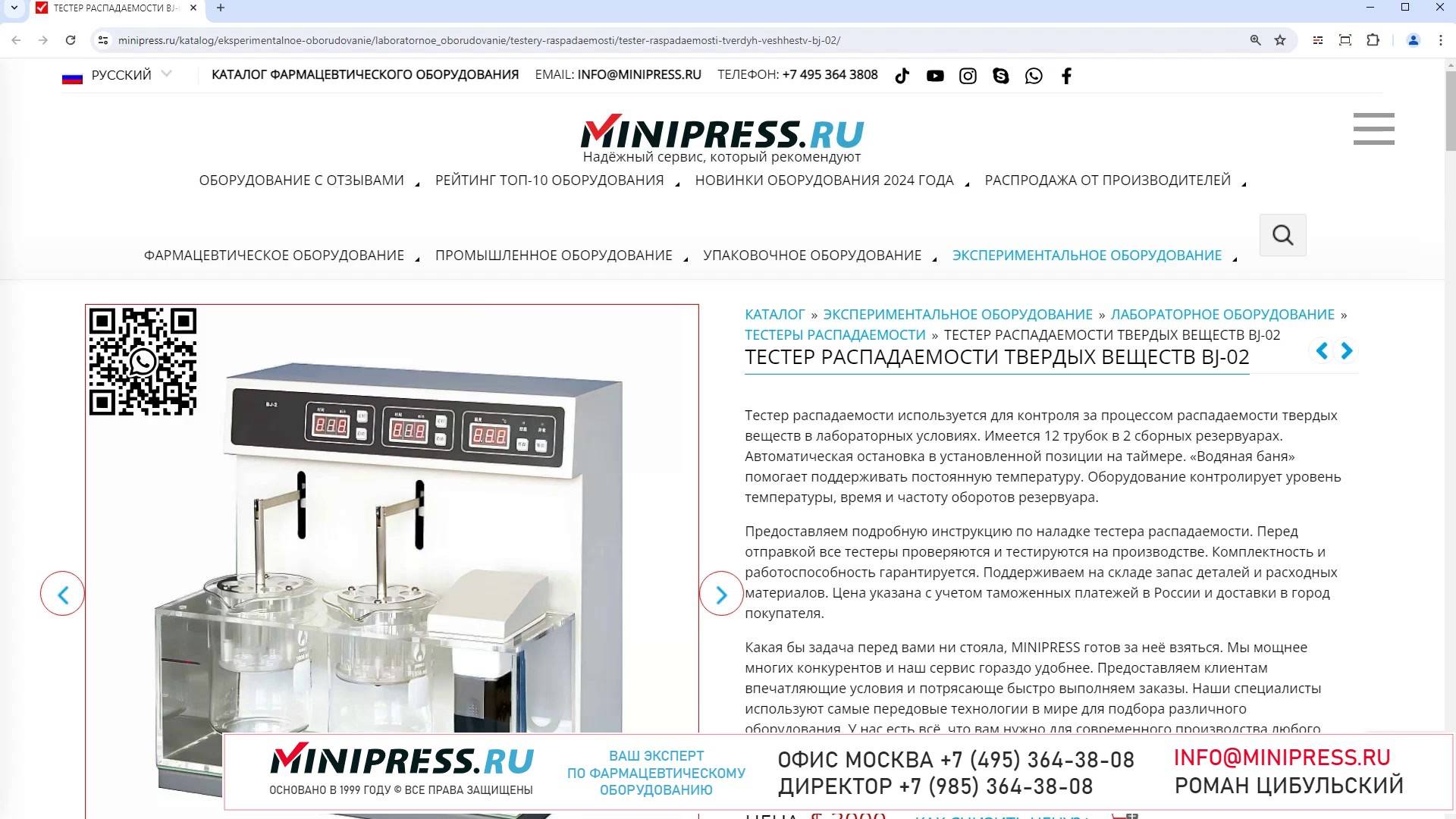 Minipress.ru Тестер распадаемости твердых веществ BJ-02