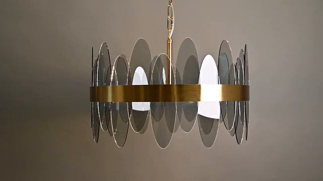 Центральным элементом стильной линии Meredith является дымчатое стекло овальной формы, идеально сочетающееся с обрамляющим люстру металлическим кольцом цвета латунь. Meredith выглядит одновременно строго, современно и элегантно, и выгодно подчеркнет интерьер в стиле неоклассика или ар-деко. Линия включает две люстры разного диаметра и бра.