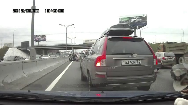 Случайный водитель автомобиля с регистратором стал свидетелем конфликта между группой мотоциклистов и автомобилистом на дороге «МКАД» (Россия).