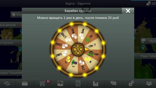 Вращаю барабан судьбы в My fishing world!Делаю слабое вращение.