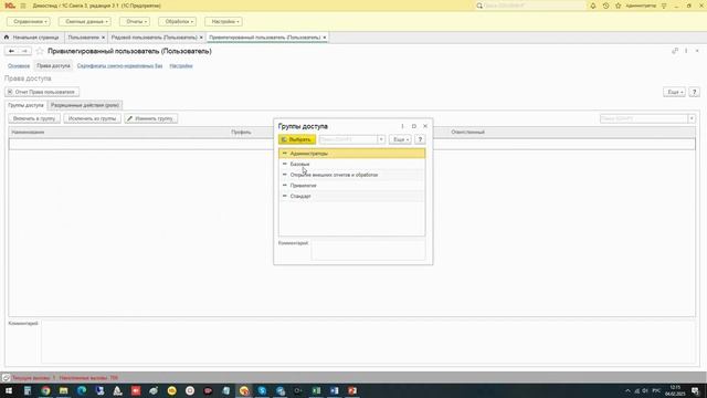 Настройка разграничений функций и полномочий пользователей