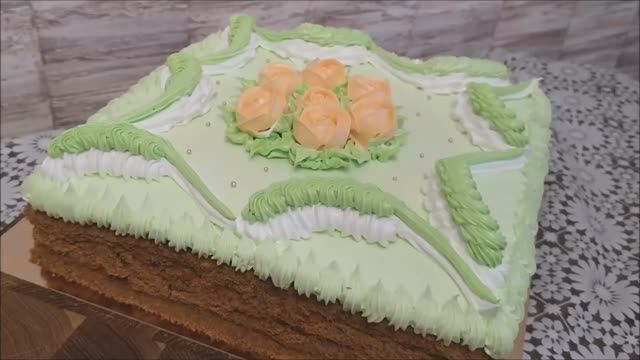 Торт с кремовыми цветами. Квадратный торт. Украшение торта кремом в домашних условиях
