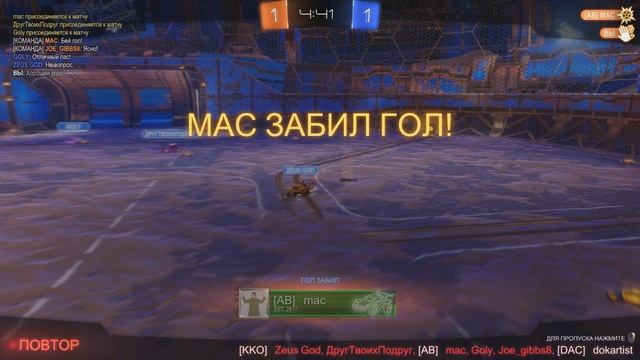 rocket league - гол тиммейта после вбрасывания в угол