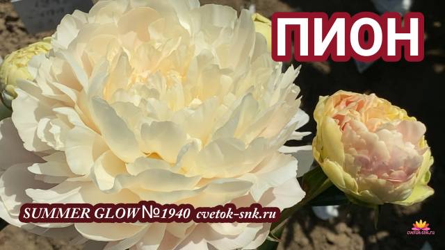 Summer Glow - желтовато-белый пион с махровой формой цветка и средним сроком цветения. Диаметр цветка - 18 см. Высота цветоноса - 70 см. Артикул на нашем сайте - 1940. Подробнее познакомиться с пионом Саммер Глоу можно здесь https://clck.ru/3HKWHj Посмотреть растения для вашего сада можно здесь https://www.cvetok-snk.ru/ Если вам понравилось это видео - ставьте лайк! И не забывайте подписываться на наш канал - впереди много интересного!