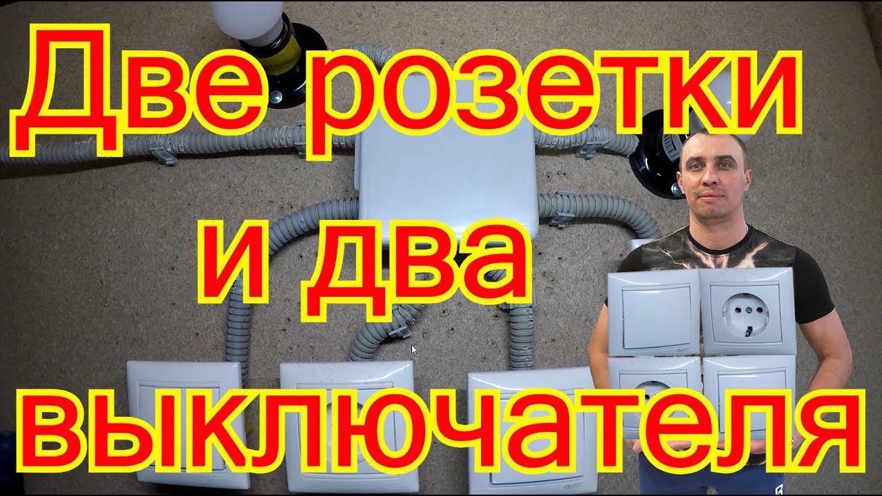 Как подключить две розетки и два выключателя.