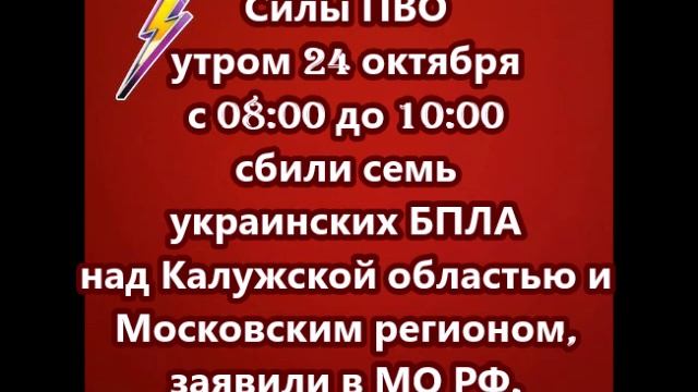 Силы ПВО с 08:00 до 10:00 сбили семь украинских БПЛА над Калужской областью и Московским регионом