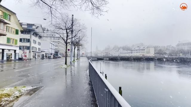 Прогуляйтесь по заснеженному Цюриху! Наконец-то в Цюрихе , Швейцария , снова пошел снег 🌤Температура воздуха : -07°C -08°C