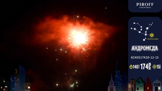 БСК0317410-12-15 Андромеда Батарея салютов с веерами 174 залпа 1, 1,2 и 1,5 дюйма